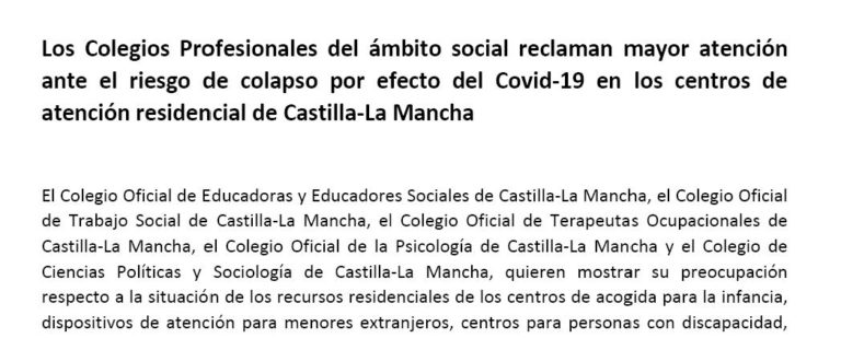 Comunicado conjunto de las profesiones del ámbito social de Castilla-La Mancha