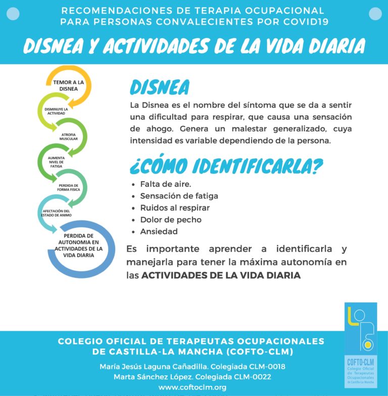 Nuestras colegiadas María Jesús Laguna Cañadilla y Marta Sánchez López han desarrollado unas indicaciones y consejos dirigidos a personas convalecientes por COVID 19 para mantener la máxima autonomía en sus actividades de la Vida Diaria.